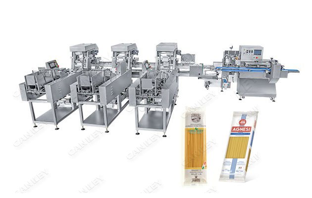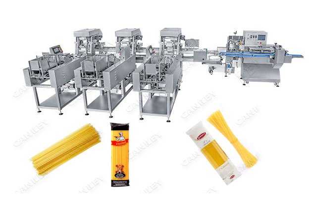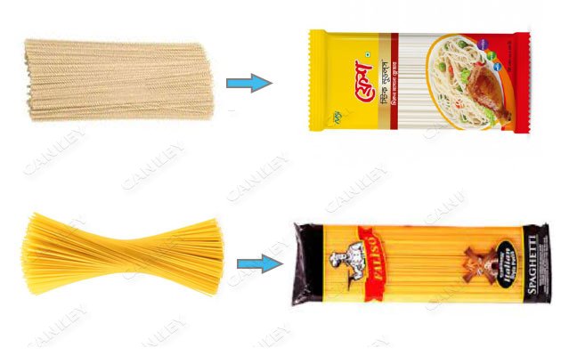 The stick noodle packaging machine is designed with the function of weighing and feeding, which can be used for the packaging of long products such as vermicelli, spaghetti, stick noodle etc, and the products can be packaged into flat or three-dimensional shape through packaging materials.