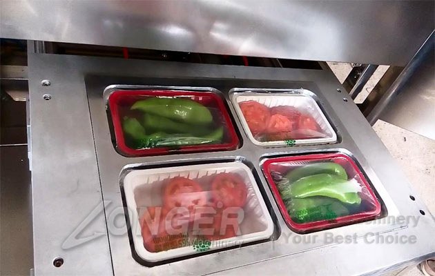 3.After the goods have been filling the box into the lower cavity packaging process automatically: vacuum, inflatable - hot sealing -cut - packaging products discharged.