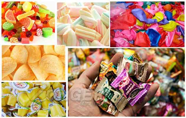 candy, shrimp, potato chips, frech fries, puffed food, nuts, biscuits, chocolate, balloons, accessories amd so on.