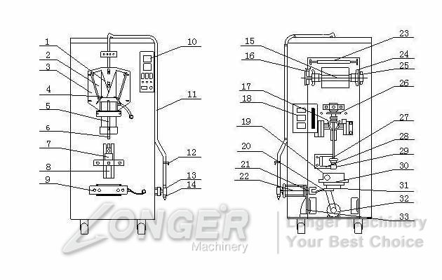 This is automatic vinegar Pouch Packaging Machine|Soy sauce Filling Sealing Machine, mainly used to pack liquid into pouch. This machine can also be used to pack water, juice, vinegar, soybean sauce and other drinkings.
