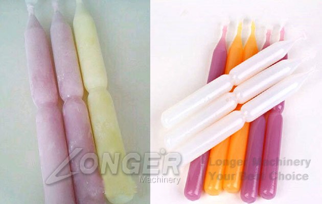 This fruit juicy ice pops pouch filling machine is used for filling and sealing drinking/milk/juice to popsicle bags. Easy to operate and maintain.